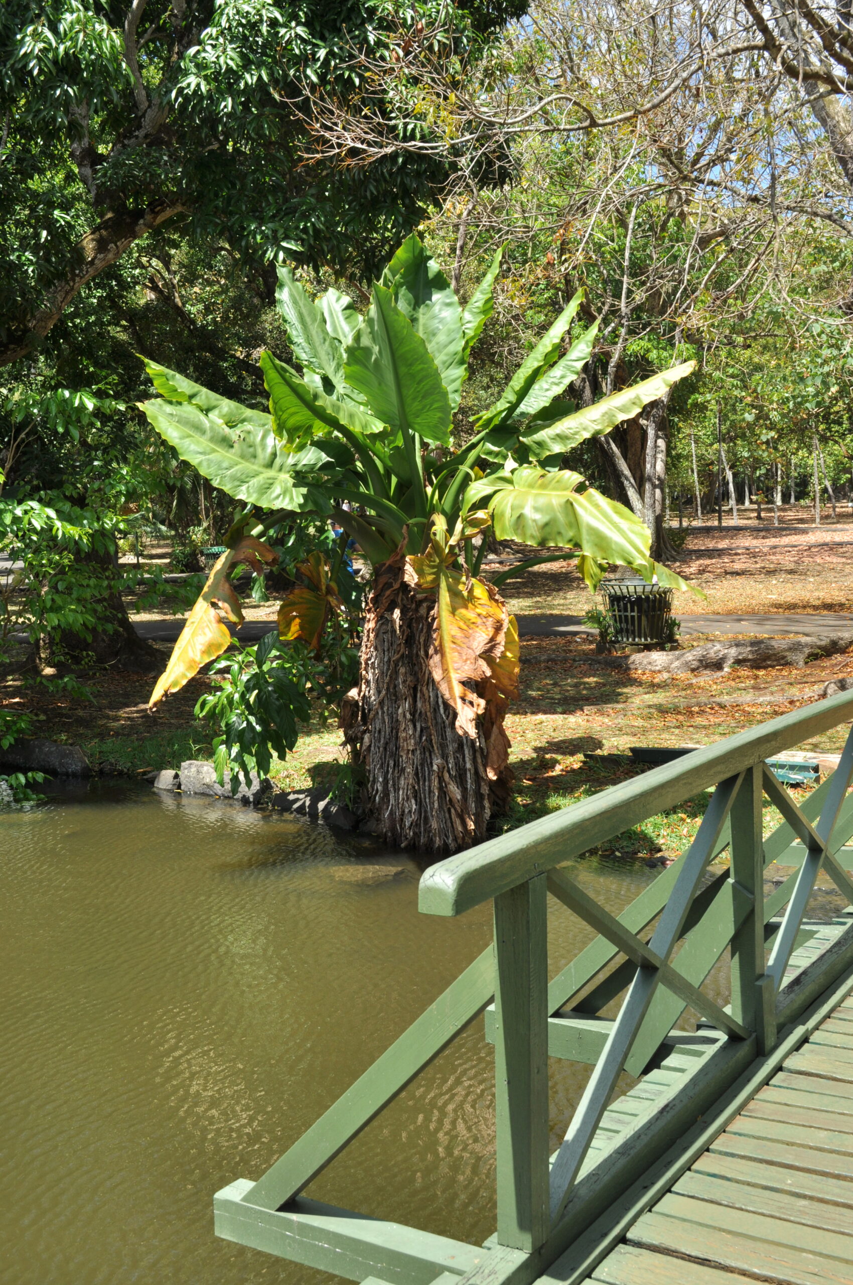 Wichtigstes Ziel für mich war der Botanische Garten in Pamplemousse. Die Anlage bietet eine Menge schöner Winkel und Ecken, aber von der erhofften Blütenpracht war wenig zu sehen. Besonders enttäuscht war ich von der vielgerühmten Victoria regia, der Amazonas-Riesenseerose. Nur ein paar zerfressene schäbige Blätter dümpelten in dem Becken. Falsche Jahreszeit? Immerhin endet in Mauritius jetzt der Winter. Lustig fand ich die Attacke einer freilaufenden Gans auf Christian. Als er ans andere Ufer des Teichs flüchtete, schwamm sie ihm nach und ging erneut auf ihn los. Erst nach einem unfreundlichen Fußtritt, der sie einen Meter weit wegschleuderte, ließ sie laut schimpfend von ihm ab. Leider musste ich so lachen, dass ich gar kein Foto von der Szene geschossen habe.