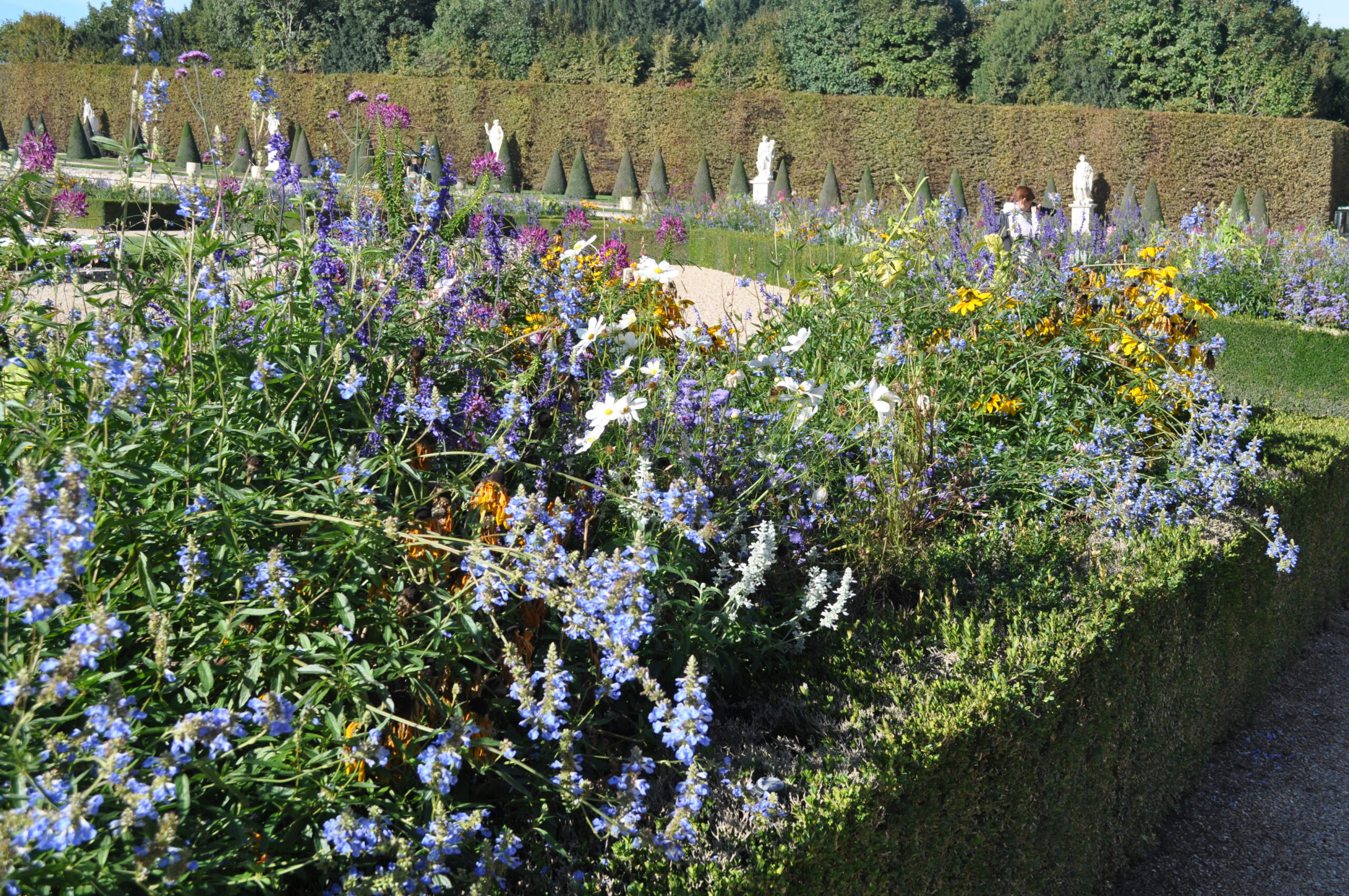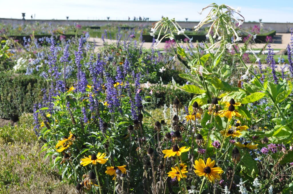 Ich habe mich sehr auf die üppigen Gärten von Versailles gefreut. Vor fast 50 Jahren habe ich mit meinen Eltern Schloss und Park besucht und in meiner Erinnerung waren die Prachtbeete auf den Terrassen übersät mit bunten Farben. Es war die damals übliche Wechselbepflanzung mit einjährigen Sommerblumen.